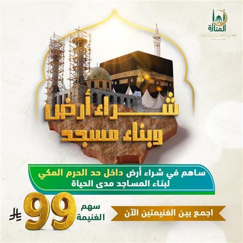 في الحرم المكي، حيث تتضاعف الحسنات وتعدل الصلاة الواحدة 100,000 صلاة، نفتح لك باب بناء مسجد في حدود الحرم المكي،مشروع بناء مسجد متكون من شراء الأرض كوقف دائم وبناء بيوت الله لخدمة ملايين المسلمين.